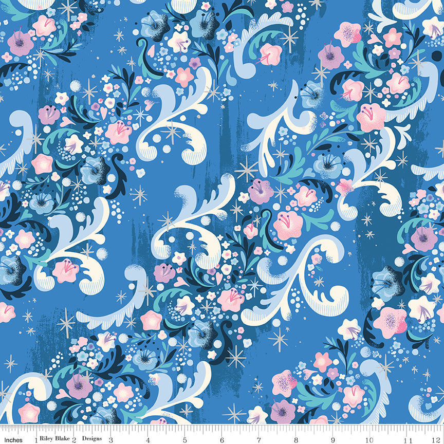 Soft, storybook florals bloom across this fabric in timeless Cinderella colors. Perfect for piecing, borders, or apparel, this design brings a touch of sweetness and charm.