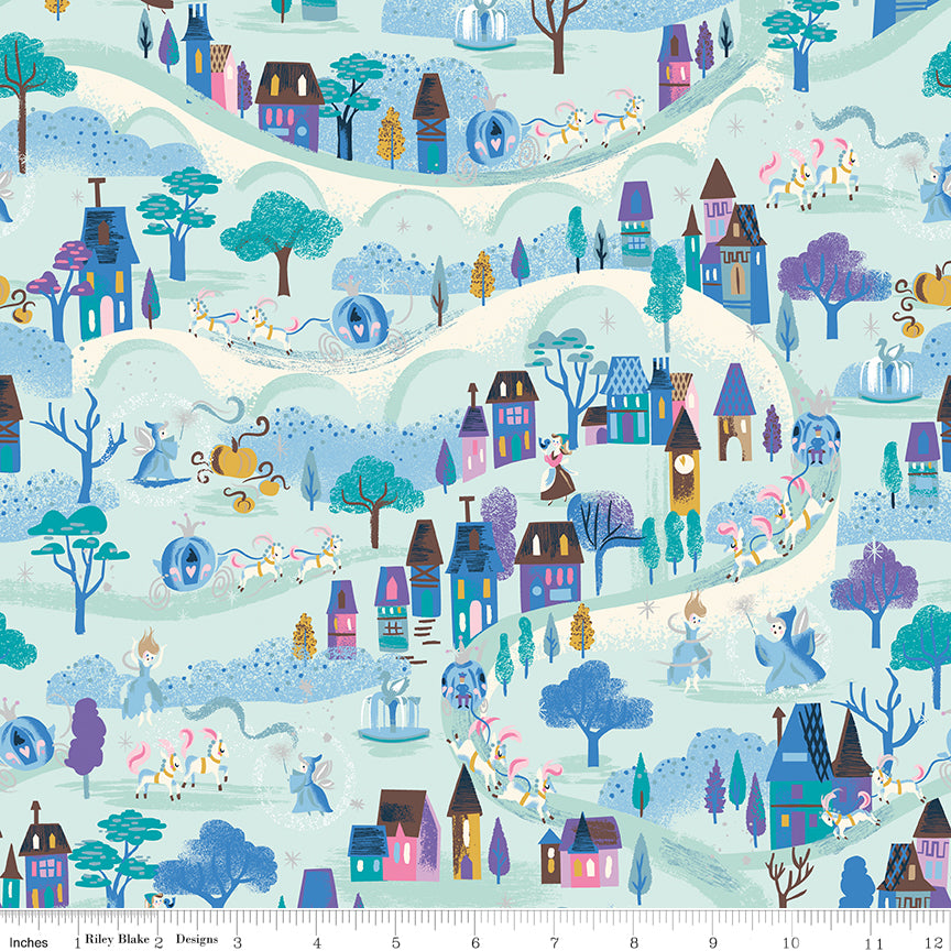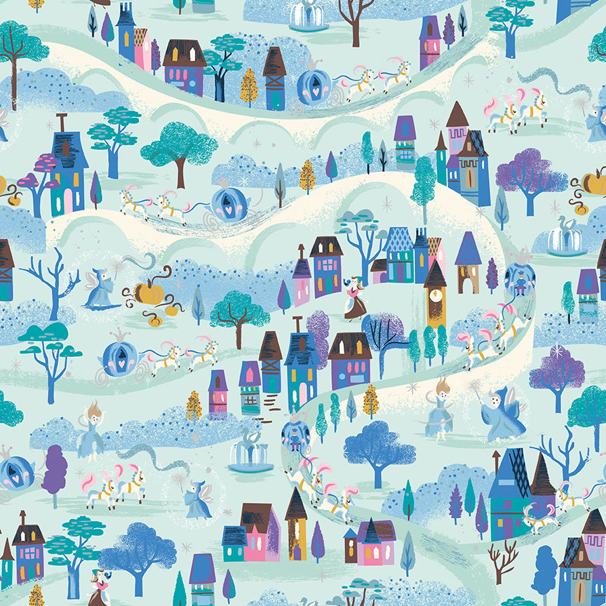 Romantic castle silhouettes sparkle under a starlit sky in this dreamy print. Ideal for fussy cutting or as a dramatic quilt background.