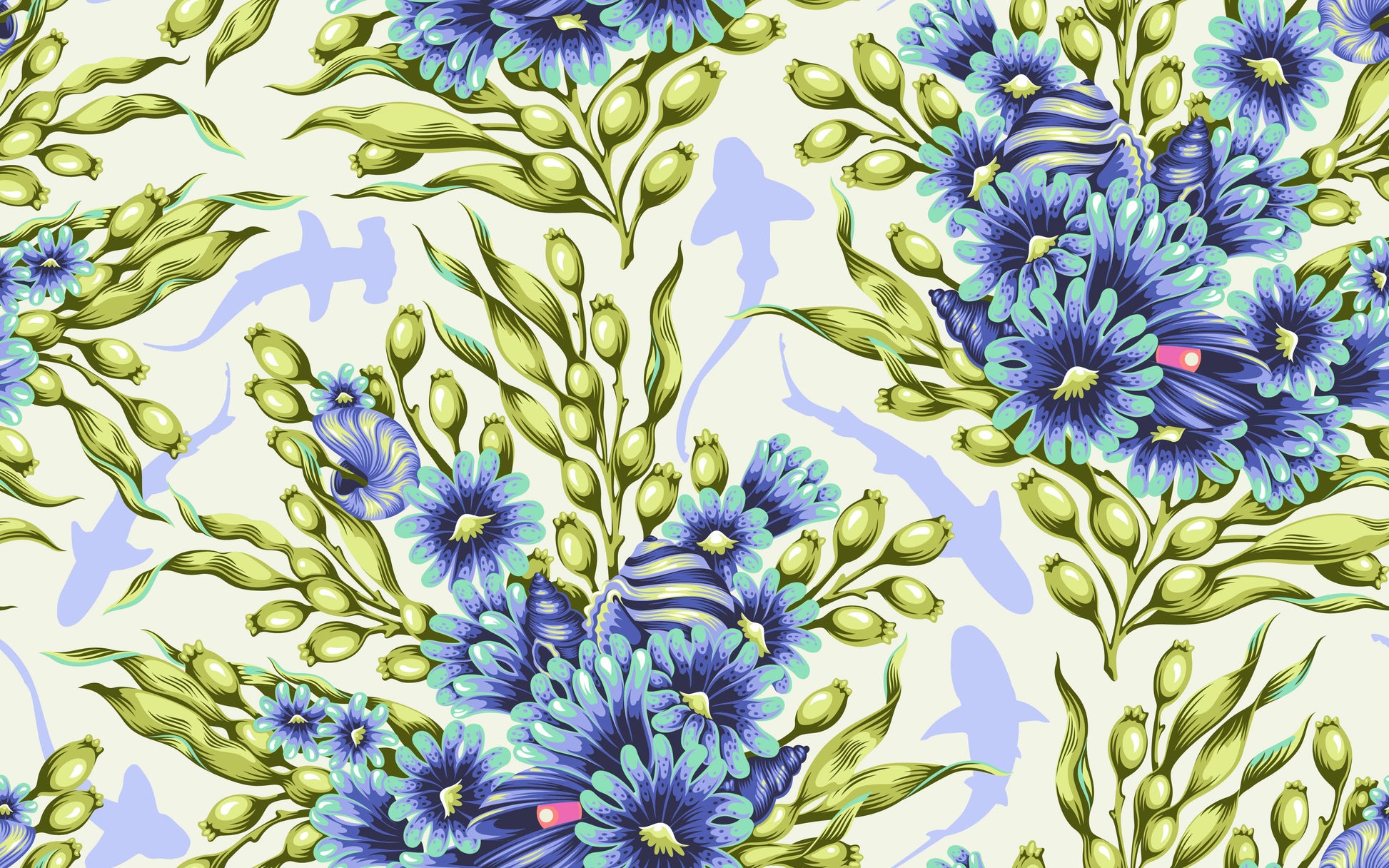Shadow Sharks in Marine color for Floral Reef by Tula Pink.