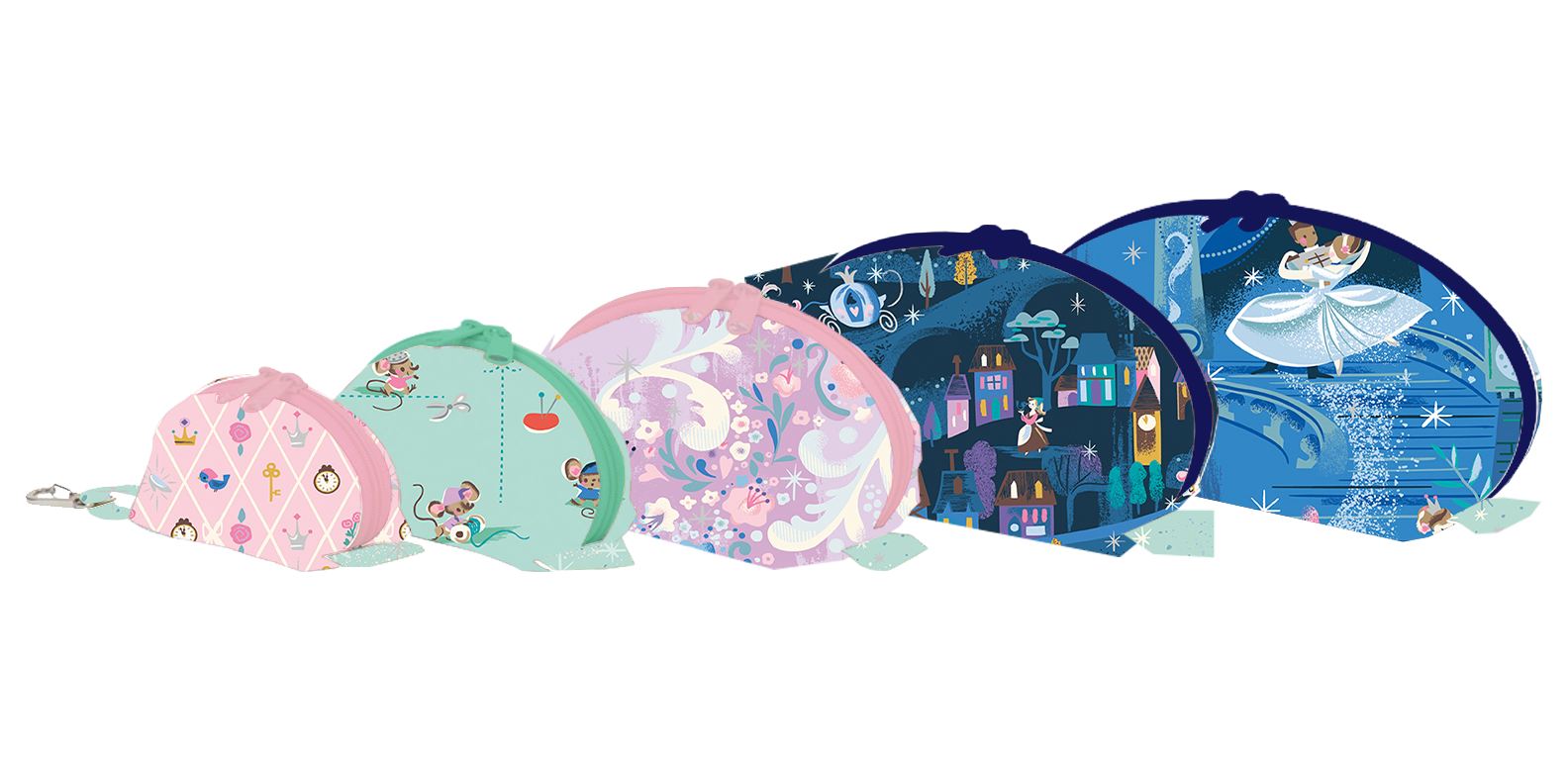Clam Up Kit using Wishes Fabric! Make one of each size of bag with this kit and have a nice travel bundle ready to go. There is enough exterior fabric for you to choose which print goes on each size, so you can make it your own.